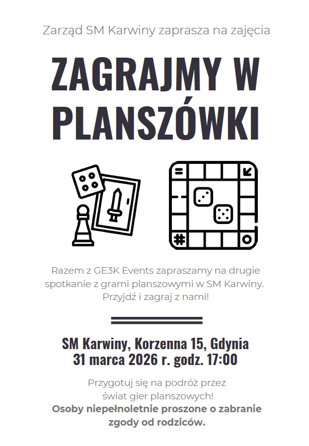 Zarząd SM Karwiny zaprasza mieszkańców na zajęcia Zagrajmy w Planszówki!